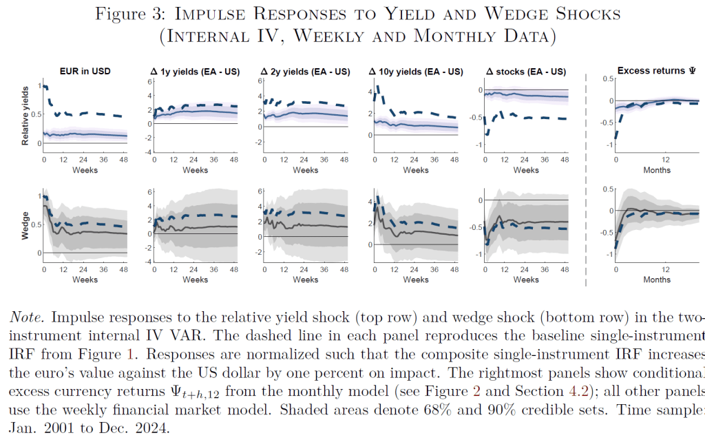 Abstract: We examine how financial markets respond to political pressure on the Federal Reserve by US President Trump in his second term, in which his public calls for lower interest rates coincided with unprecedented efforts to reshape the Fed Board. Using a dataset of dozens of political pressure events in 2025, we use high-frequency asset price responses as multi-dimensional external instruments in a proxy VAR, identifying a shock to political pressure on the Fed. We find that, unlike during Trump’s first term, Fed pressure does not materialize as a de facto monetary easing: although interest rates decline, equity prices tend to fall and measures of uncertainty rise, consistent with a deterioration in market confidence. The identified shock can account for much of the response by financial markets to the “Liberation Day” tariff announcements in early April 2025, and continues to weigh on the USD’s exchange rate, indicating a sustained loss of confidence in the dollar.
